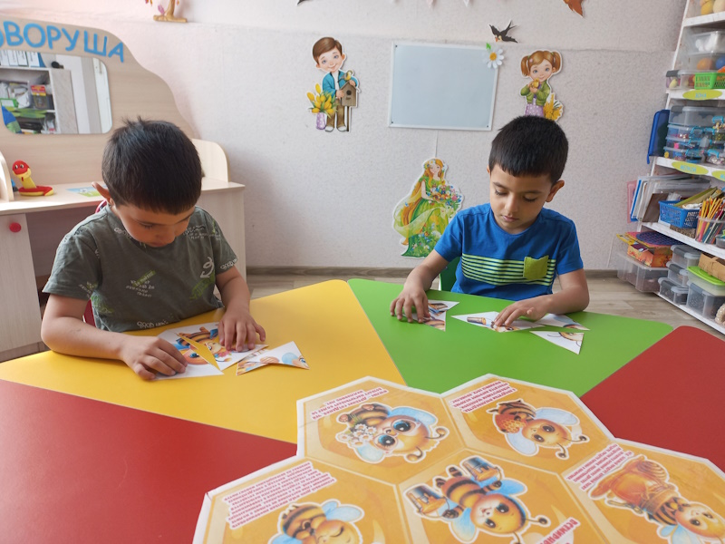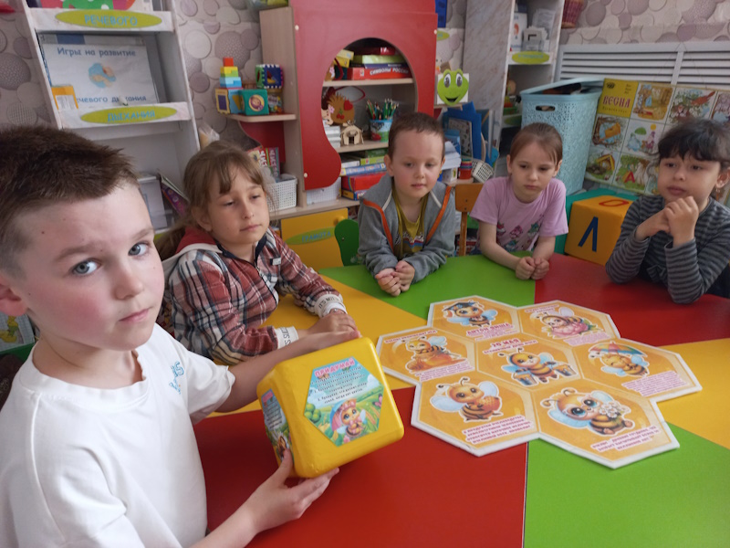 Воспитанники логопедического пункта присоединились к этому Всемирному празднику и узнали много нового: пчёлы — единственные насекомые на нашей планете, которые производят для человека еду и лекарство — мёд. Мальчишки и девчонки собирали пазлы, рисовали дорожки пчёлкам, играли в «Соты Блума». Особенно понравилась детям артикуляционная гимнастика «Пчёлка Майя».