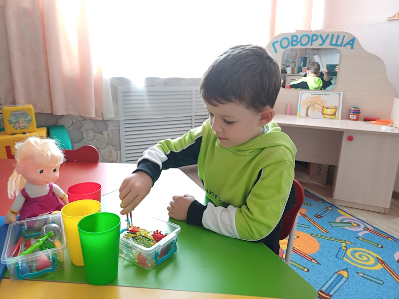 На индивидуальных занятиях я использую различные виды игр для развития мелкой моторики. Воспитанники разучивают пальчиковую гимнастику, выкладывают фигуры из палочек, нейродорожки мелкими предметами, любят играть с природным материалом, выполняют сортировки с помощью пинцета, справляются со шнуровкой. Улучшению моторики пальчиков и развитию речи также способствуют игры с прищепками и сухие бассейны.