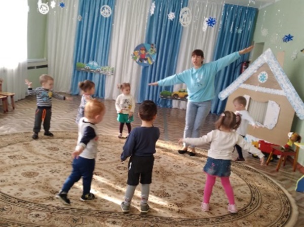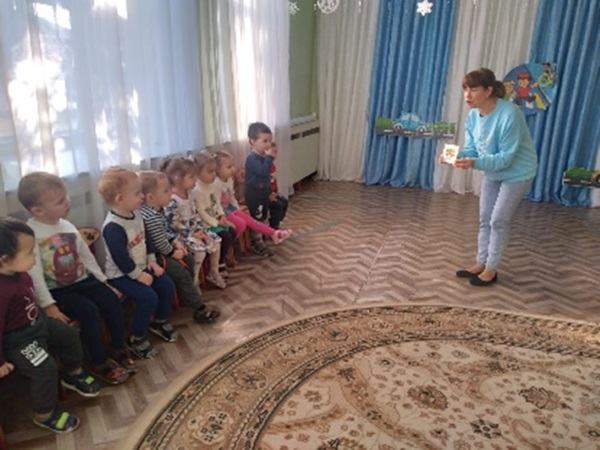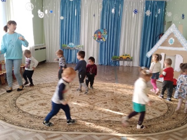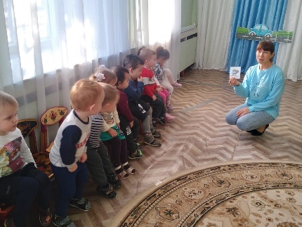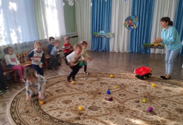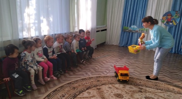 В группу раннего возраста приехал гость Дружок на красной машине. Дети с радостью встретили Дружка. Он рассказал, что путешествовал в разных местах и делал там фотографии, и предложил их посмотреть. Ребята с интересом согласились взглянуть на них. Первая фотография была с изображением грузовика. Воспитатель поинтересовался у детей: «Что можно перевести на грузовике?». Дети дали разные ответы. Тогда воспитатель предложил детям перевести фрукты. Дети с большим удовольствием погрузили в кузов фрукты. На следующей фотографии был автобус. Воспитатель предложил детям поиграть в подвижную игру «Автобус», ходят под музыку по кругу, когда выключается музыка автобус подъезжает к остановке и дети должны остановиться. Следующая картинка была с изображением самолета. Дружок предложил детям прослушать стихотворение и повторять действия за взрослым. Ребята с радостью поиграли в самолеты. Воспитатель показал еще одну картинку с изображением поезда. Детям предложили стать поездом и погудеть. С большим восторгом дети проехались по залу. Игры вызвали у ребят много положительных эмоций. Гостю понравился веселый поезд ребят, но он попросил напомнить какой звук у транспорта, который был на картинках. И дети отлично справились с заданием.