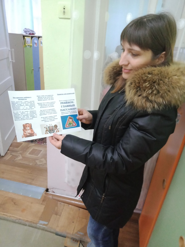 Также родителям воспитанников были вручены памятки: «Чтобы избежать беды, с автокреслом ты води» и «Ребенок в машине» (безопасность на дороге).